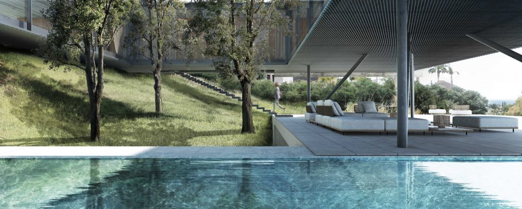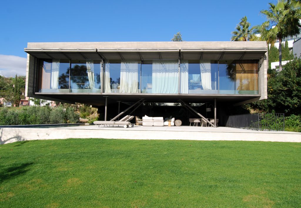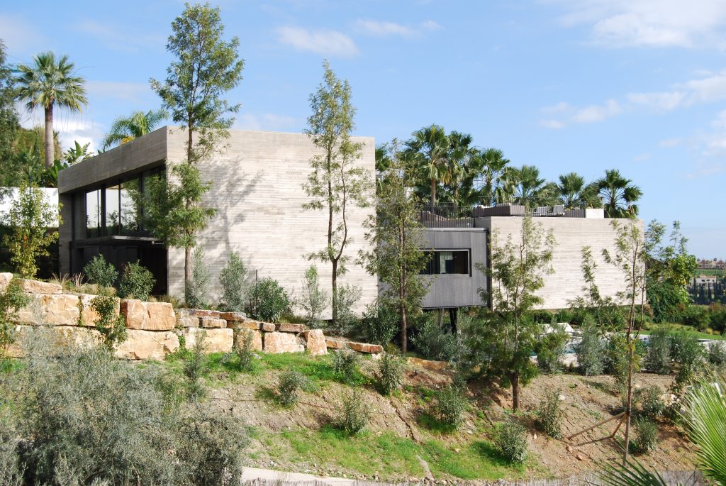 La vivienda se resuelve mediante un volumen sencillo, articulado mediante un patio central a modo de pulmón de la vivienda y abierto al jardín interior que permite unas visuales cruzadas y unas vistas cercanas al interior, al mar y al golf. El proyecto es ejemplo de dialogo entre tradición y modernidad, aportando contundencia formal y carácter unitario.