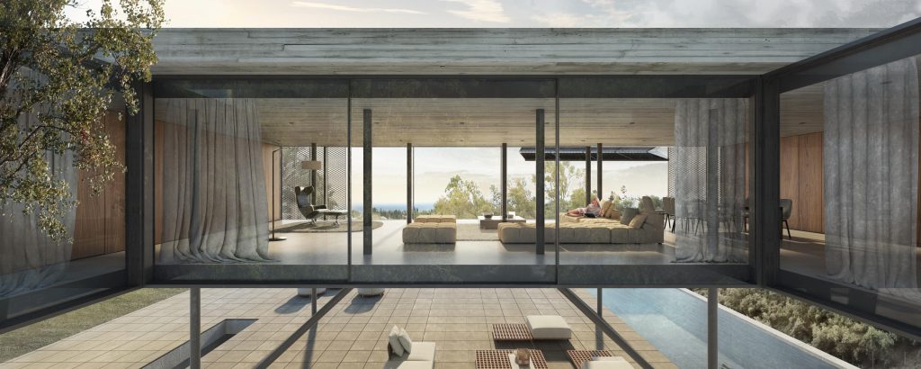 Desde una personal mirada la vivienda trata los elementos: volumen, luz, recorrido, paisaje, como objetos de la arquitectura, todo ello trabajado desde una materialidad de fuerte carácter, gran expresividad, pero, sobre todo, en búsqueda de la mayor sinceridad posible.