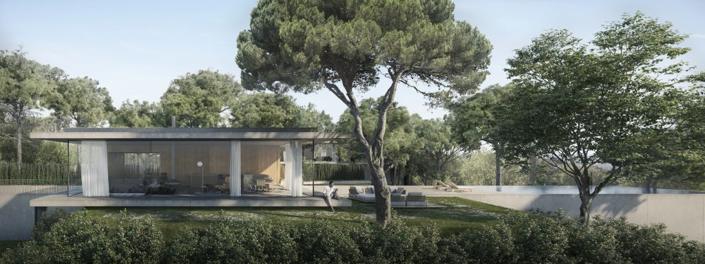 Viviendas limpias, de líneas rectas y puras. Confort y eficiencia como ejes del proyecto que se abre al encinar de Boadilla. La excepcional orientación aporta privacidad y seguridad a la vivienda. Interior fluido y cuidado con grandes ventanales que permiten que la naturaleza entre en la vivienda.